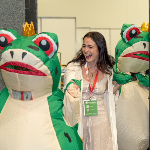 La presentación de Aliada del Villano, realizada el sábado 6 de diciembre, fue una mini convención dentro de la feria. Entre ranas de fieltro, guiños al grumpy & sunshine y un público que llegó horas antes con la convicción de que la magia también exige puntualidad, Maehrer convirtió la sala en un reino temporal.